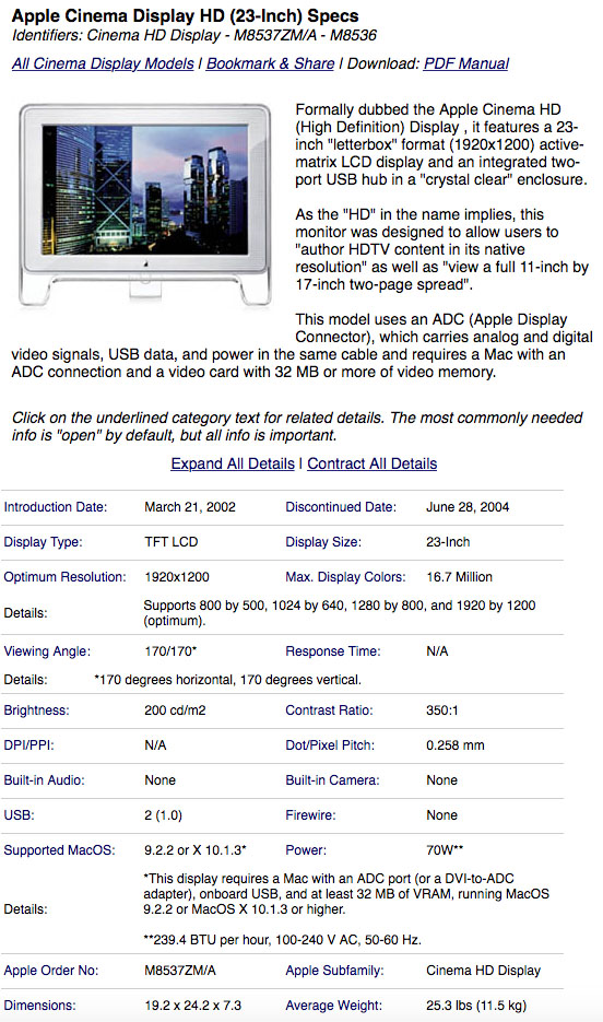 크리스탈시네마HD디스플레이 23인치판매 ADC to DVI 정품포함